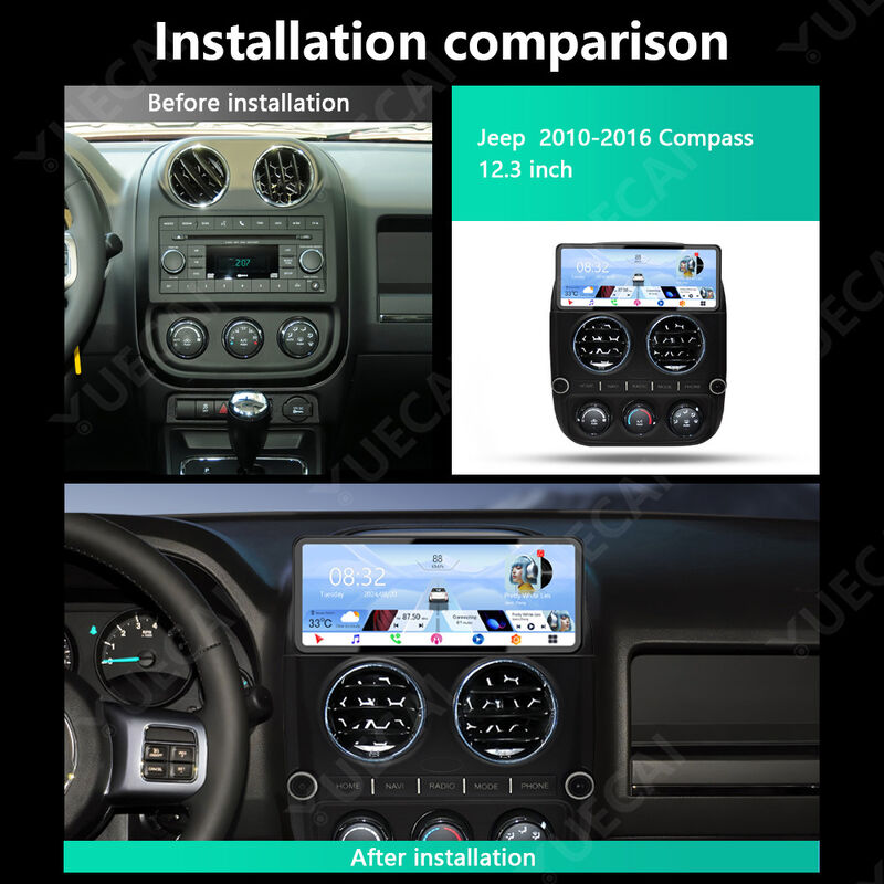 This 12.3-inch Android head unit is specifically designed for Jeep Compass models from 2010 to 2016, featuring dashboard-mounted installation with advanced multimedia capabilities.